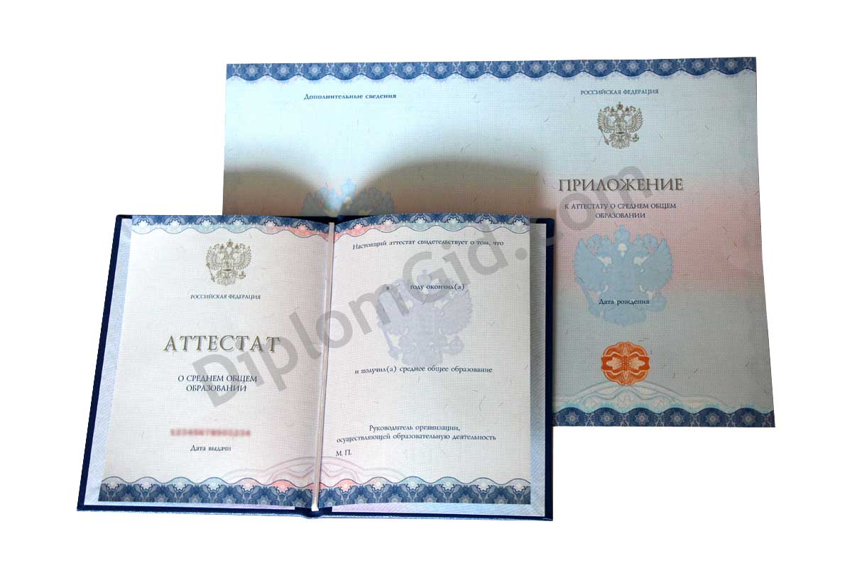 На нашем сайте Вы можете аттестат о среднем общем образовании (11 классов) без обучения, выданный любым школой Москвы и других городов России в период с 2014 по 2021 год. В комплект входит бланк, обложка и приложение, оформленные по всем стандартам.