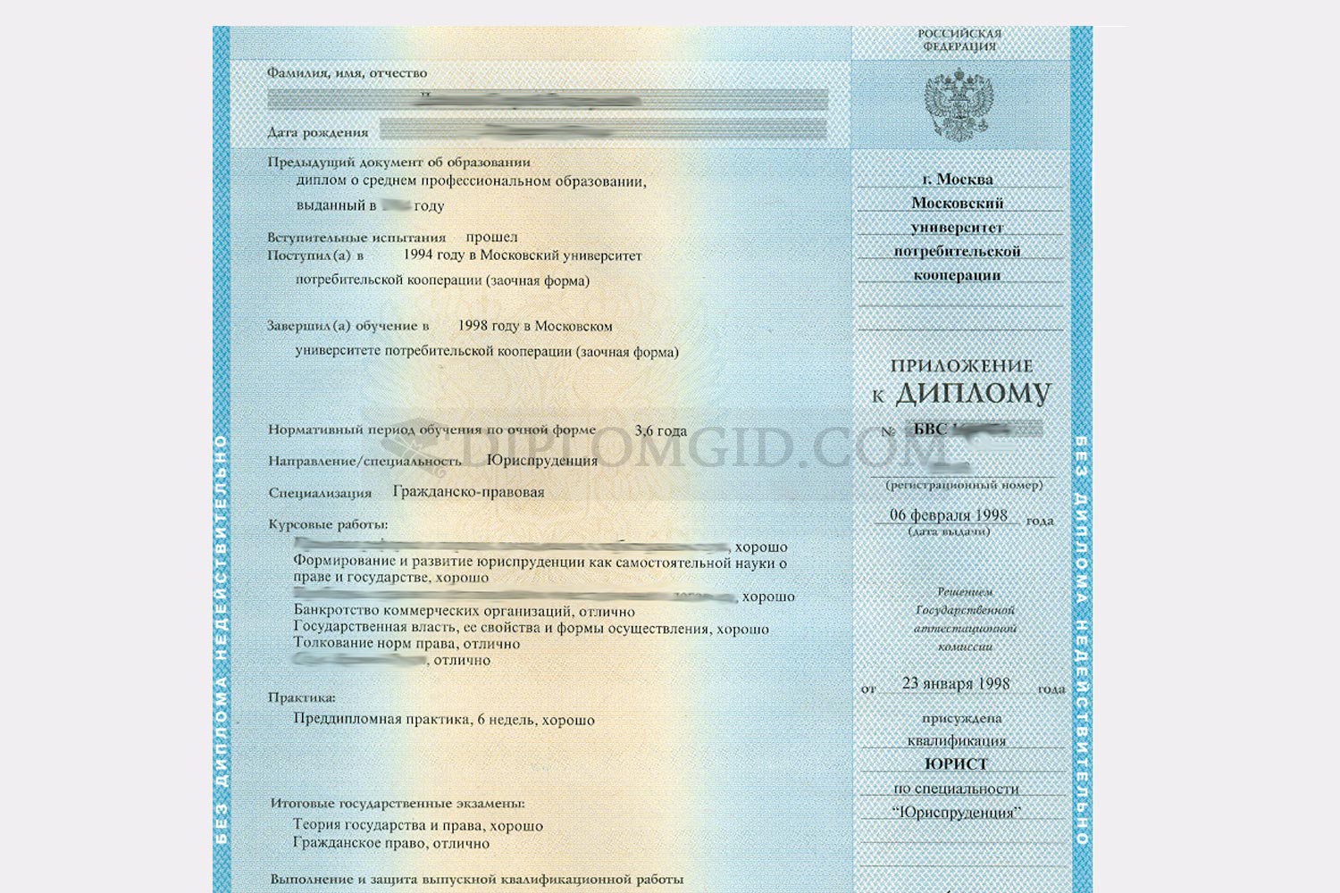 Образцы дипломов о высшем образовании